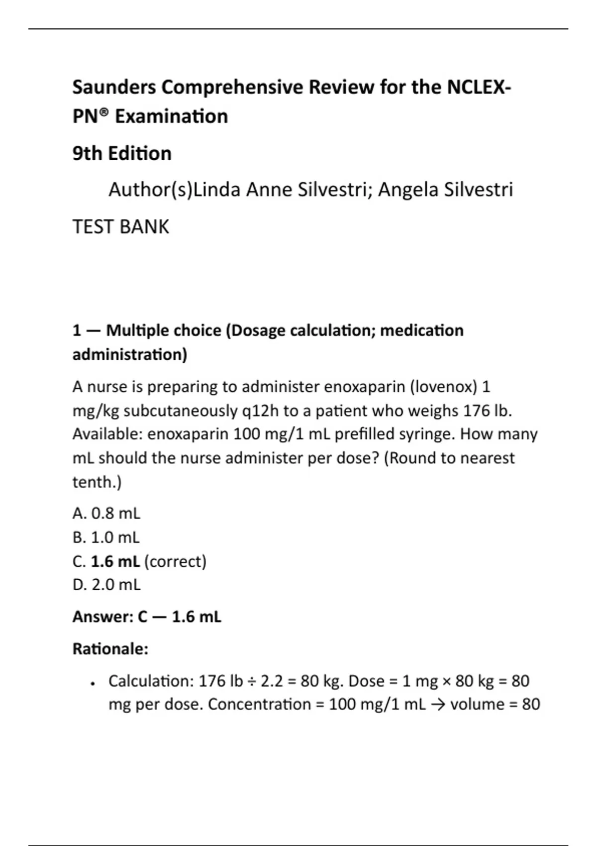 Saunders NCLEX-RN Pharmacology Test Bank 2025 | 200+ NGN Questions, Rationales & Drug Calculations for Nursing Students & Educators