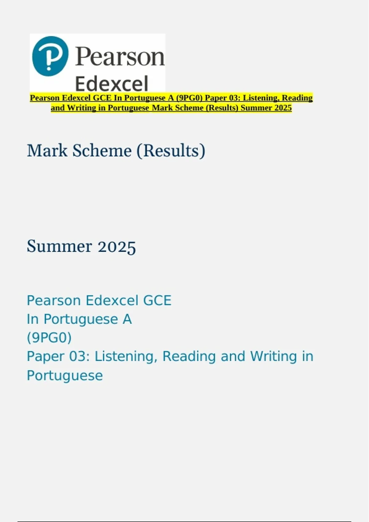 and Writing in Portuguese Mark Scheme (Results) Summer 2025
