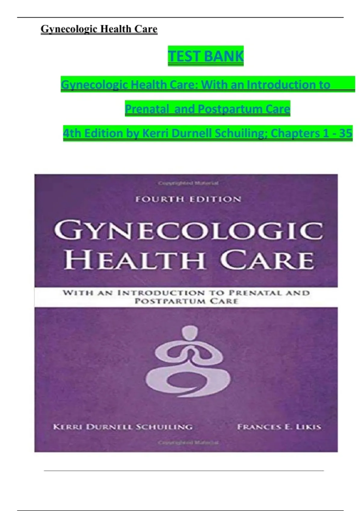 TEST BANK Gynecologic Health Care: With an Introduction to Prenatal and Postpartum Care 4th Edition