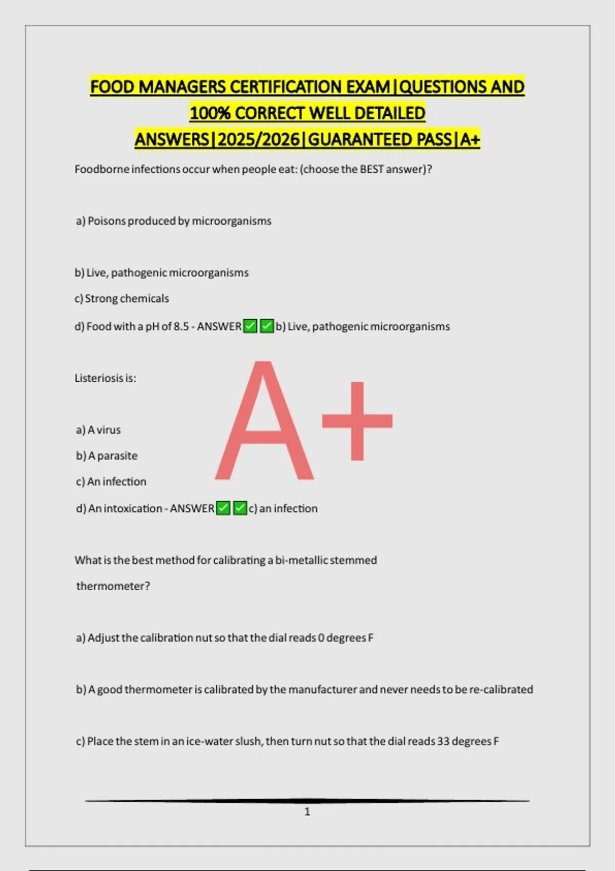 FOOD MANAGERS CERTIFICATION EXAM|QUESTIONS AND