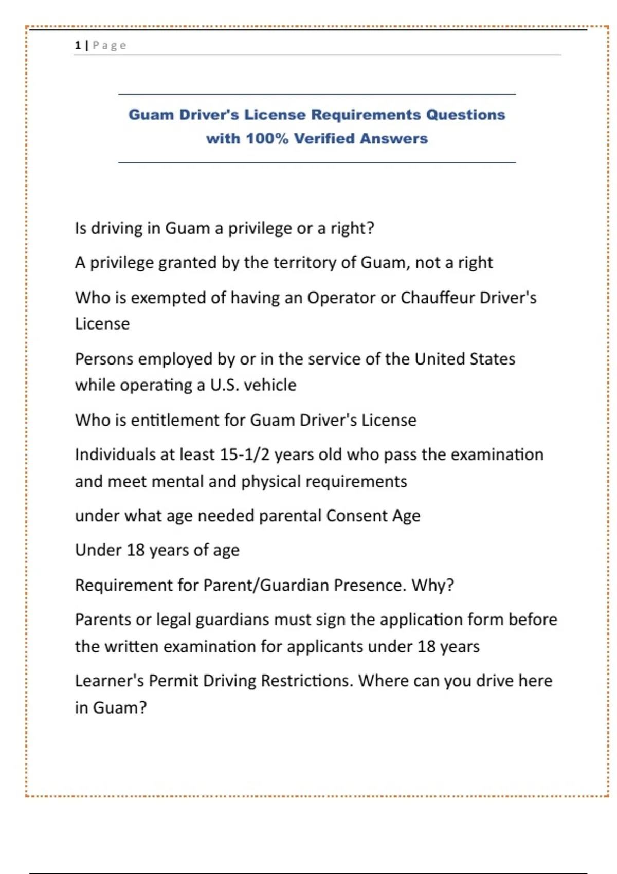 Guam Driver-s License Requirements Questions with 100% Verified Answers.