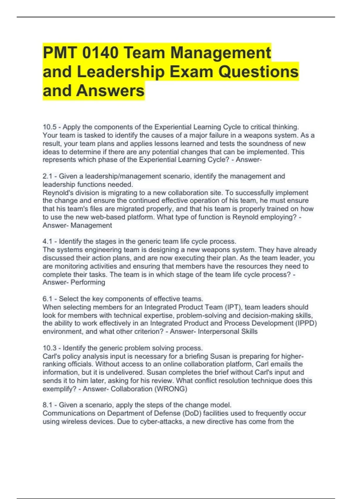 and Leadership Exam Questions