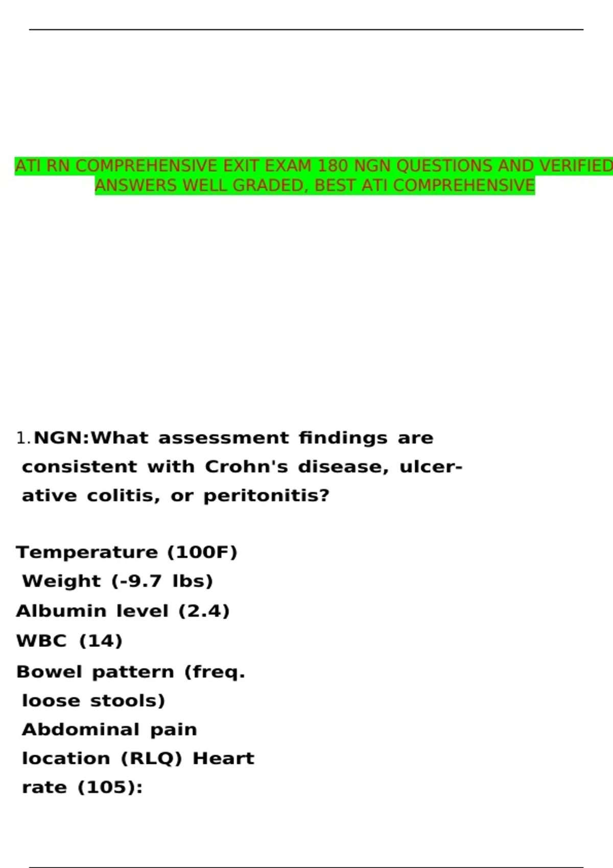 ANSWERS WELL GRADED, BEST ATI COMPREHENSIVE