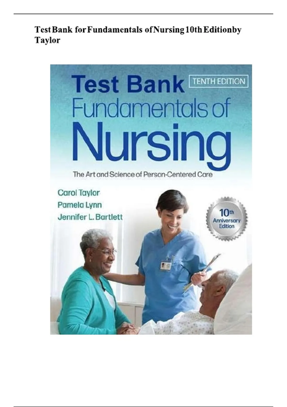 Complete Test Bank for Fundamentals of Nursing 10th Edition (Taylor, Lynn & Bartlett) with Comprehensive Questions and Correct Answers