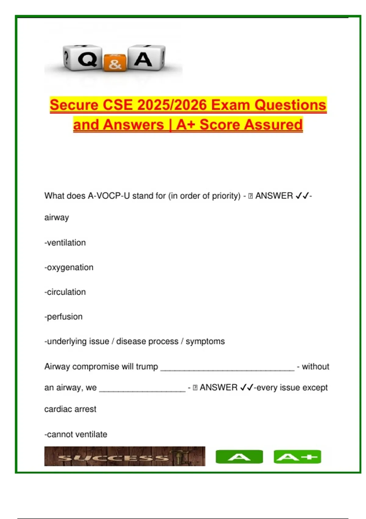 Secure CSE Exam – 2025/2026 | 100+ Verified Questions with Answers | Critical Care, Ventilator Management, Neonatal & Emergency Protocols