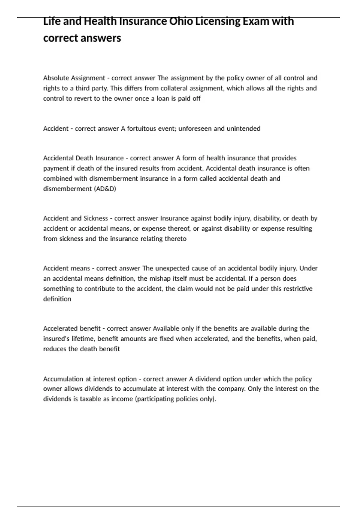 Accidental |Death |Insurance |- |correct |answer |A |form |of |health |insurance |that |provides |