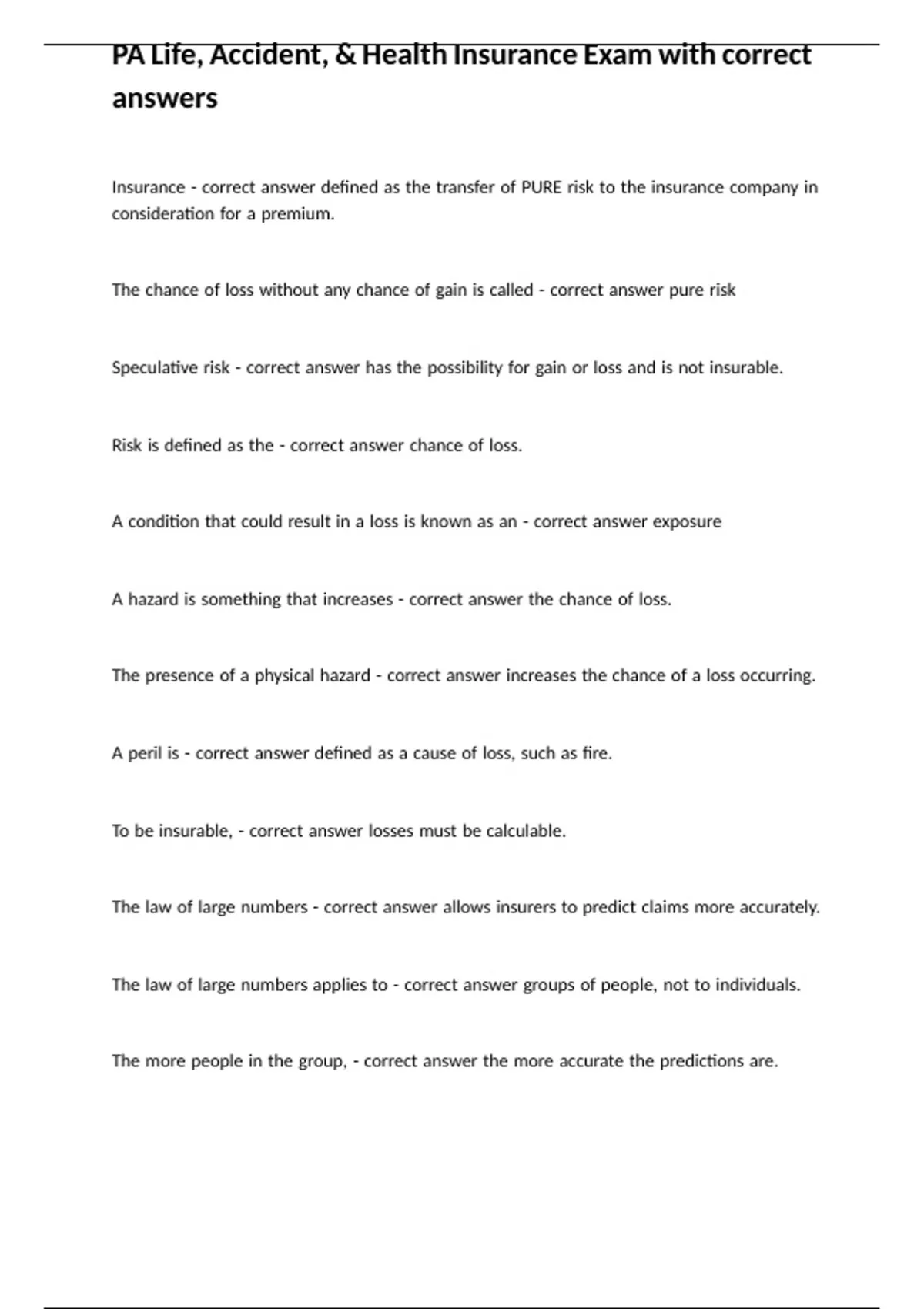 Insurance |- |correct |answer |defined |as |the |transfer |of |PURE |risk |to |the |insurance |company |in |