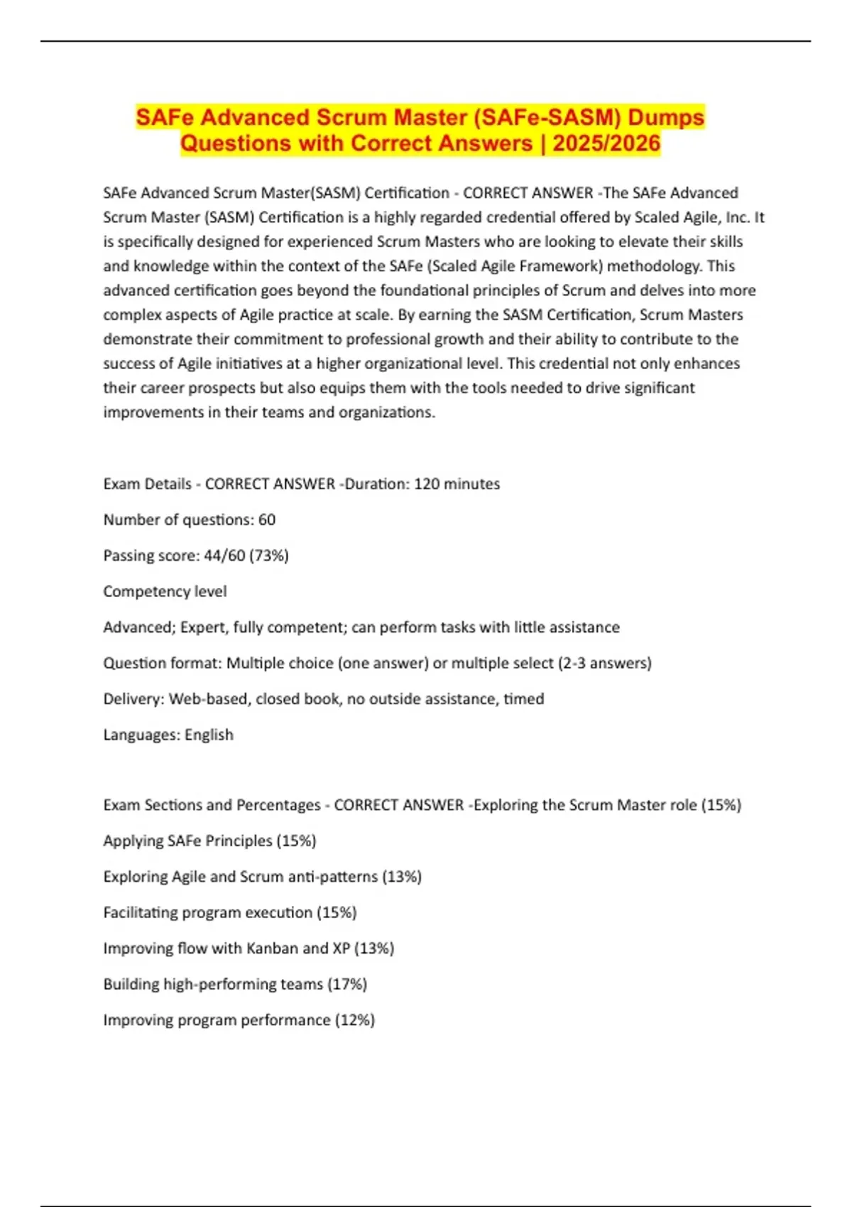 SAFe Advanced Scrum Master(SASM) Certification - CORRECT ANSWER -The SAFe Advanced