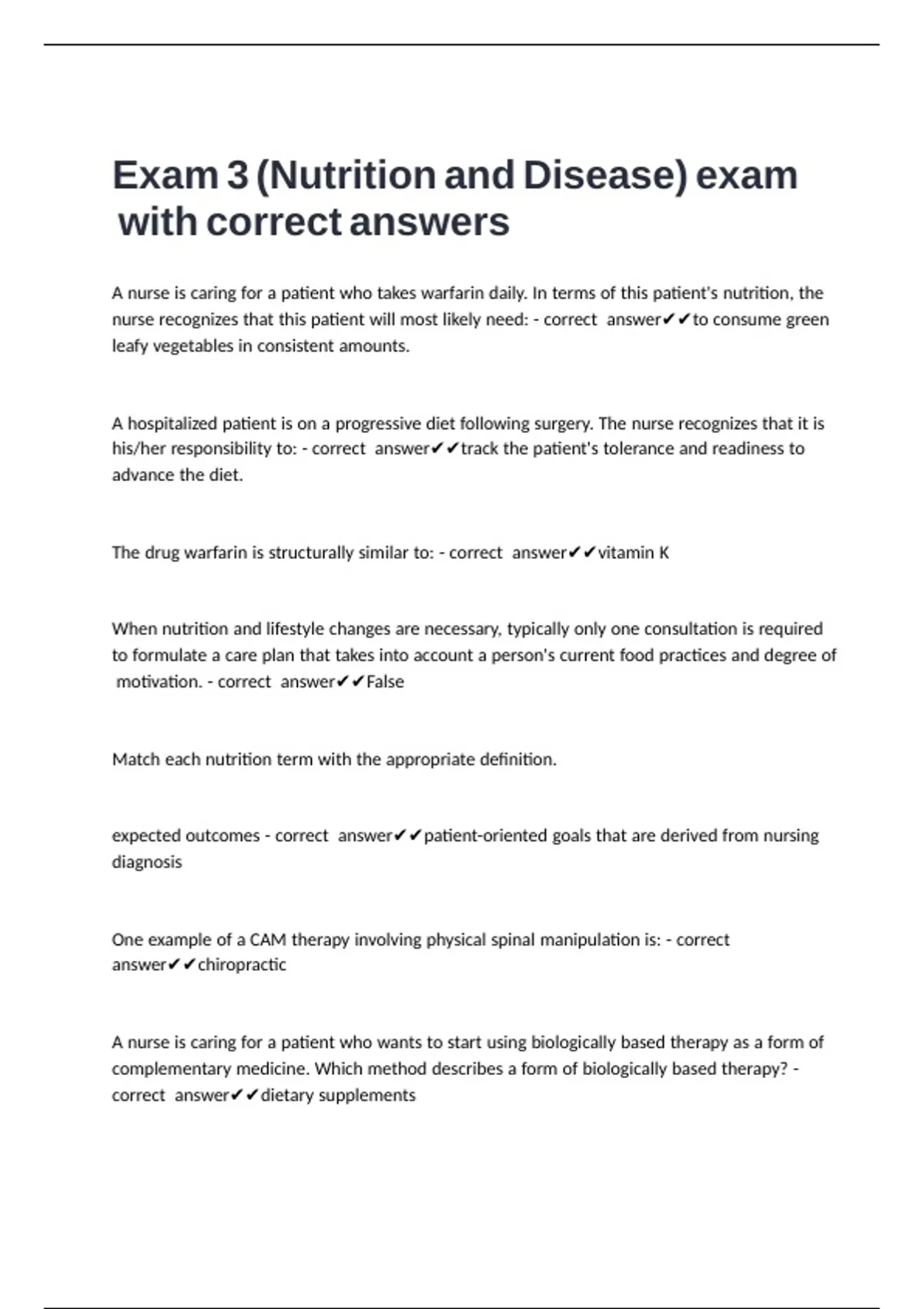 Exam 3 (Nutrition and Disease) exam with correct answers