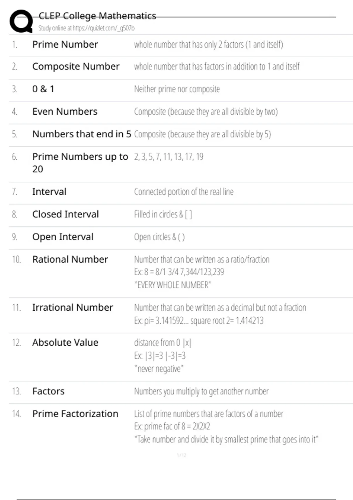 1. Prime Number whole number that has only 2 factors (1 and itself)