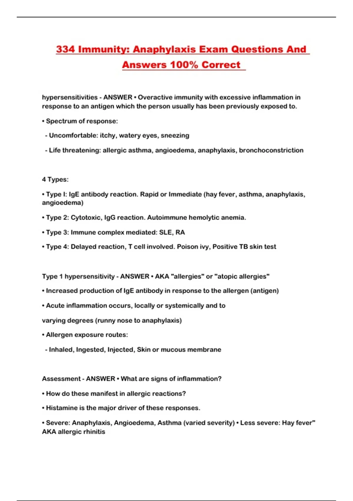 334 Immunity: Anaphylaxis Exam Questions And