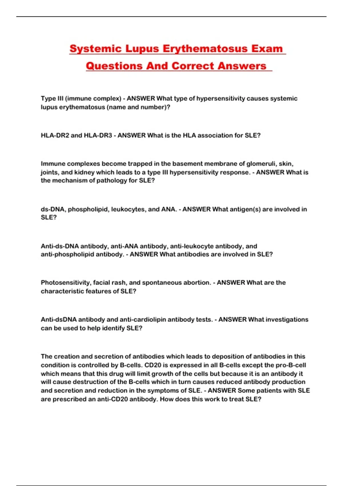 Systemic Lupus Erythematosus Exam