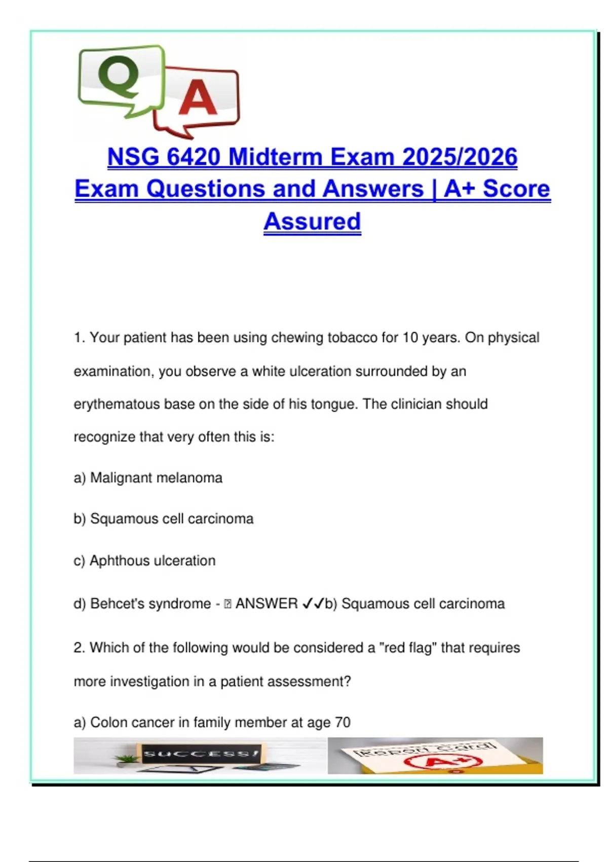Exam Questions and Answers | A+ Score