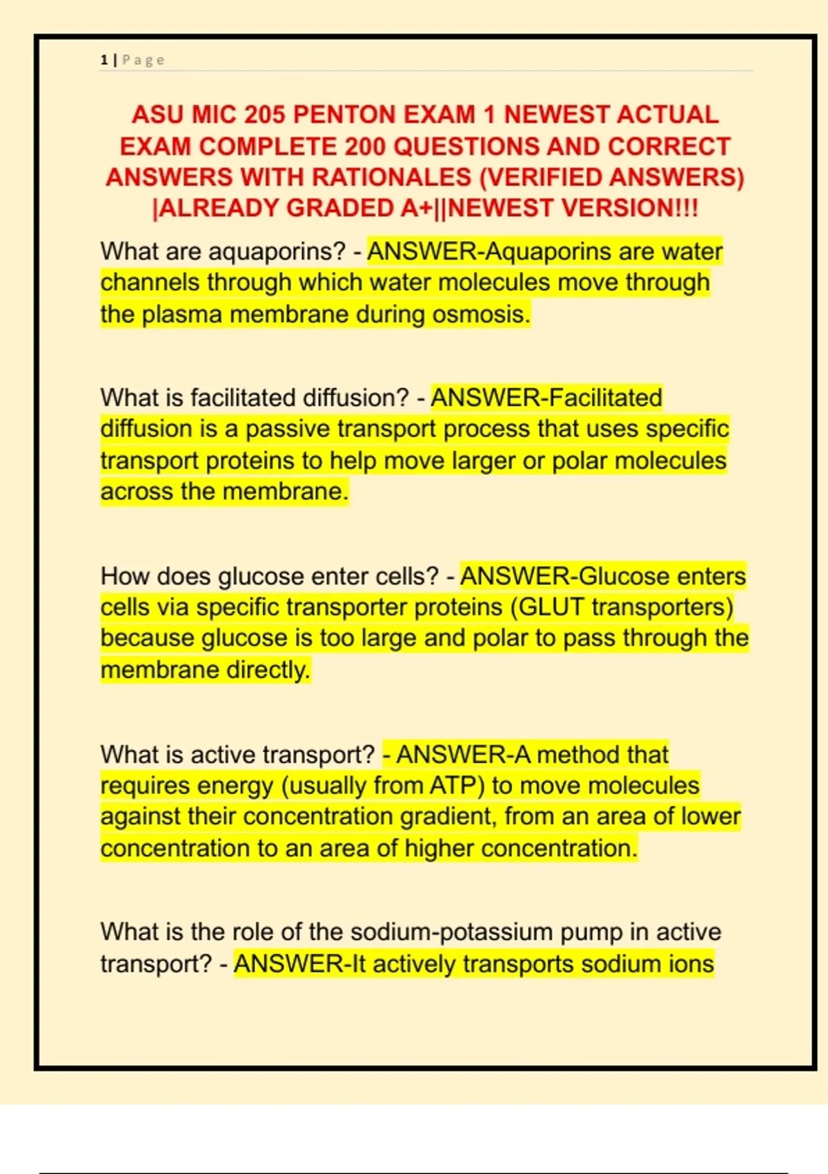 ASU MIC 205 PENTON EXAM 1 NEWEST ACTUAL