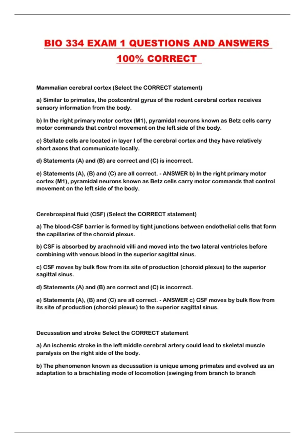 BIO 334 EXAM 1 QUESTIONS AND ANSWERS 100% CORRECT ...