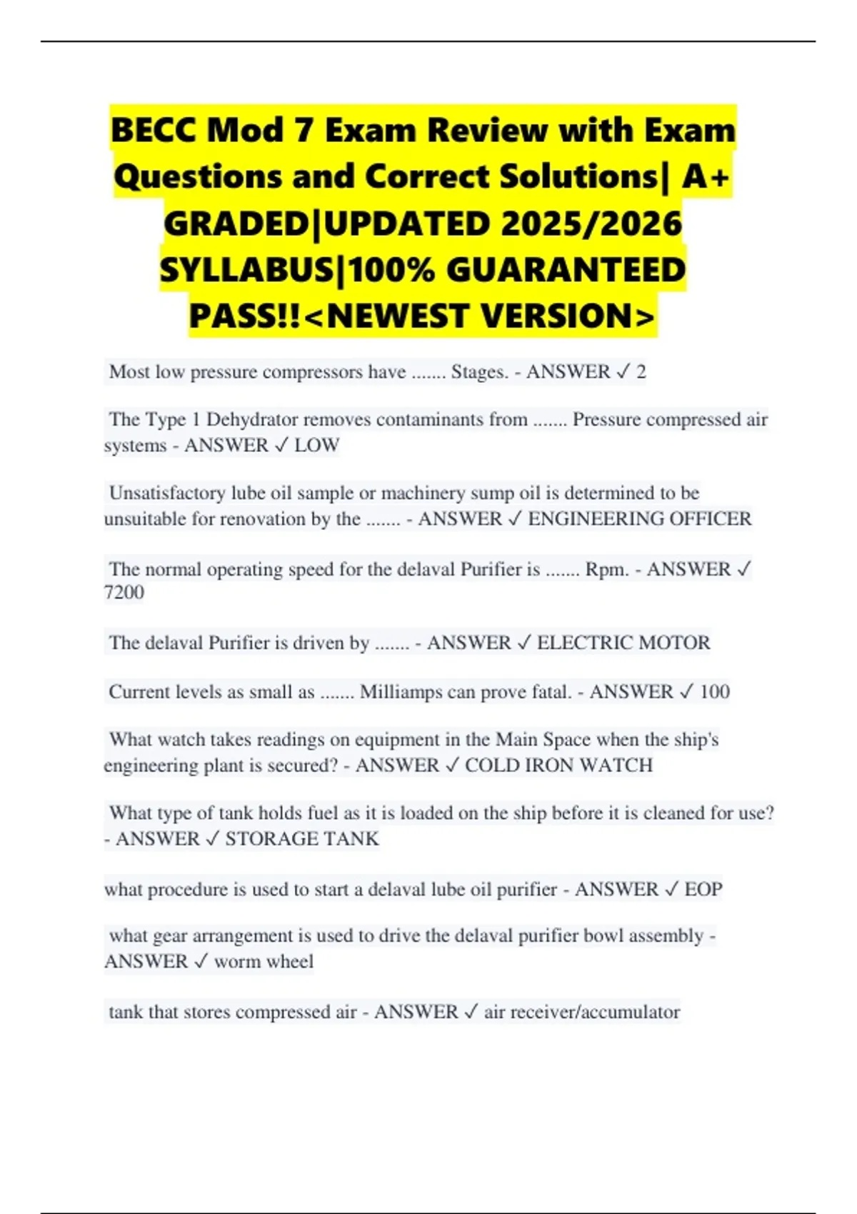 Questions and Correct Solutions| A+