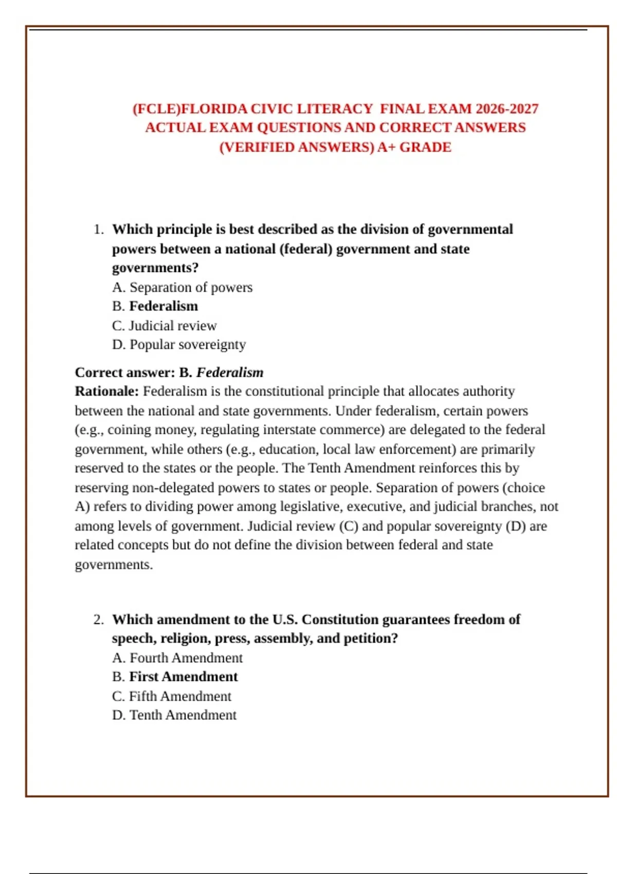 ACTUAL EXAM QUESTIONS AND CORRECT ANSWERS