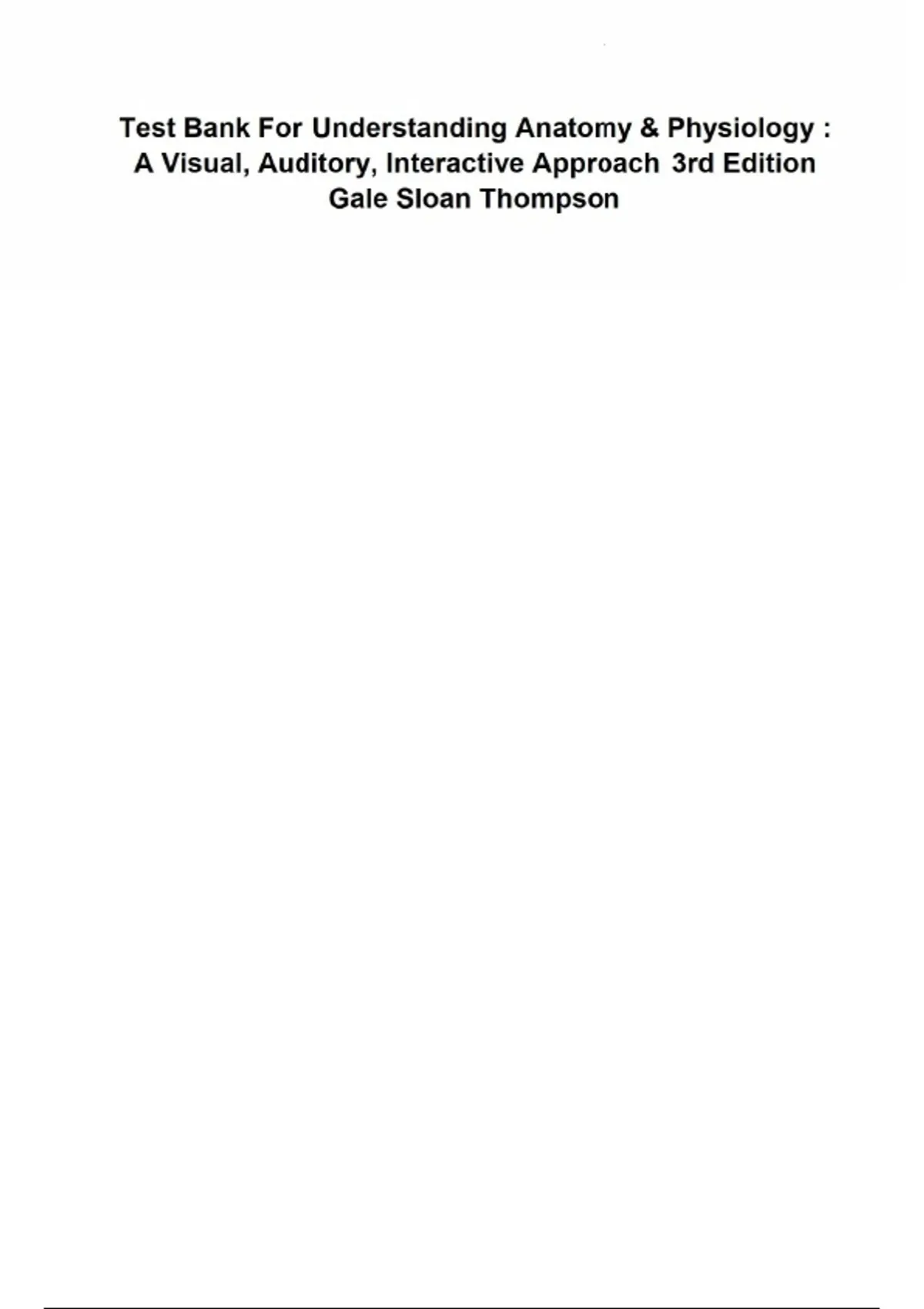 TEST BANK for Understanding Anatomy and Physiology A Visual, Auditory, Interactive Approach 3rd Edition by Gale Sloan Thompson