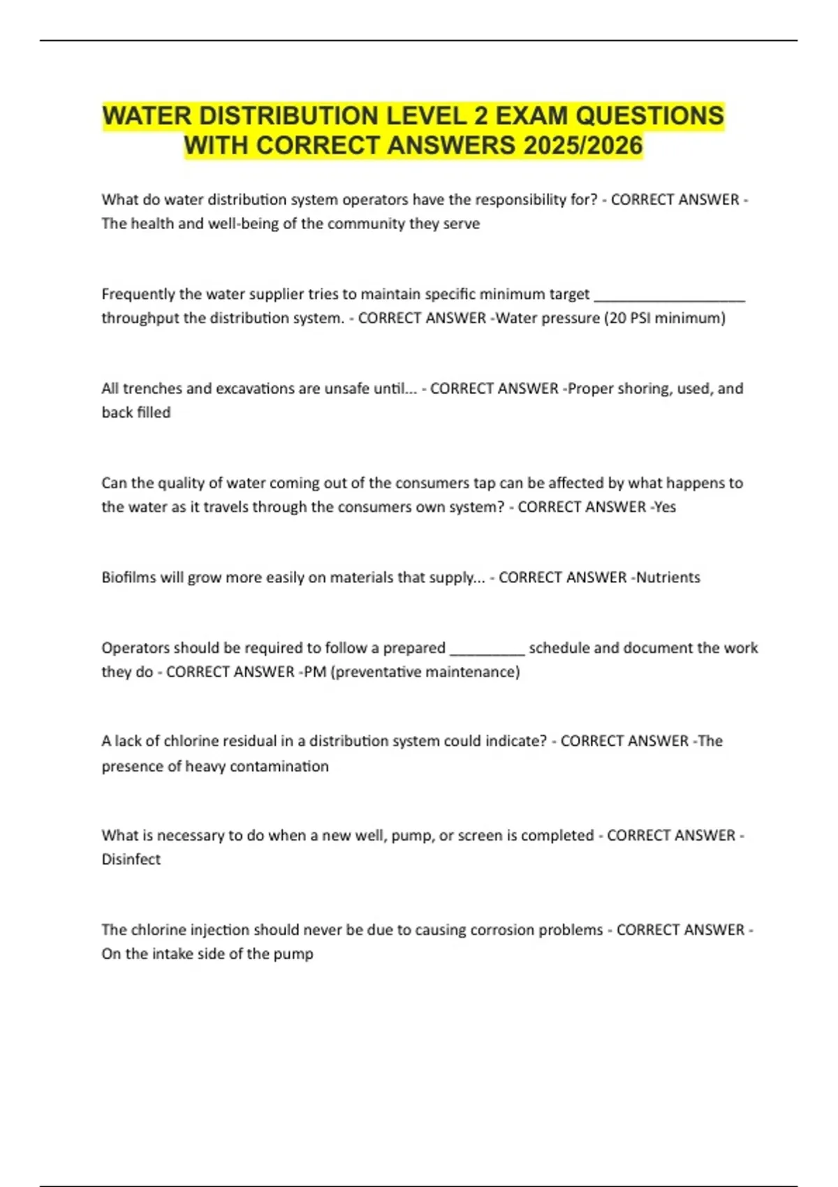 WATER DISTRIBUTION LEVEL 2 EXAM QUESTIONS