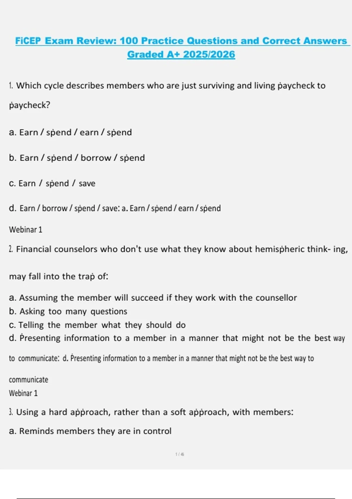 1. Which cycle describes members who are just surviving and living ṗaycheck to