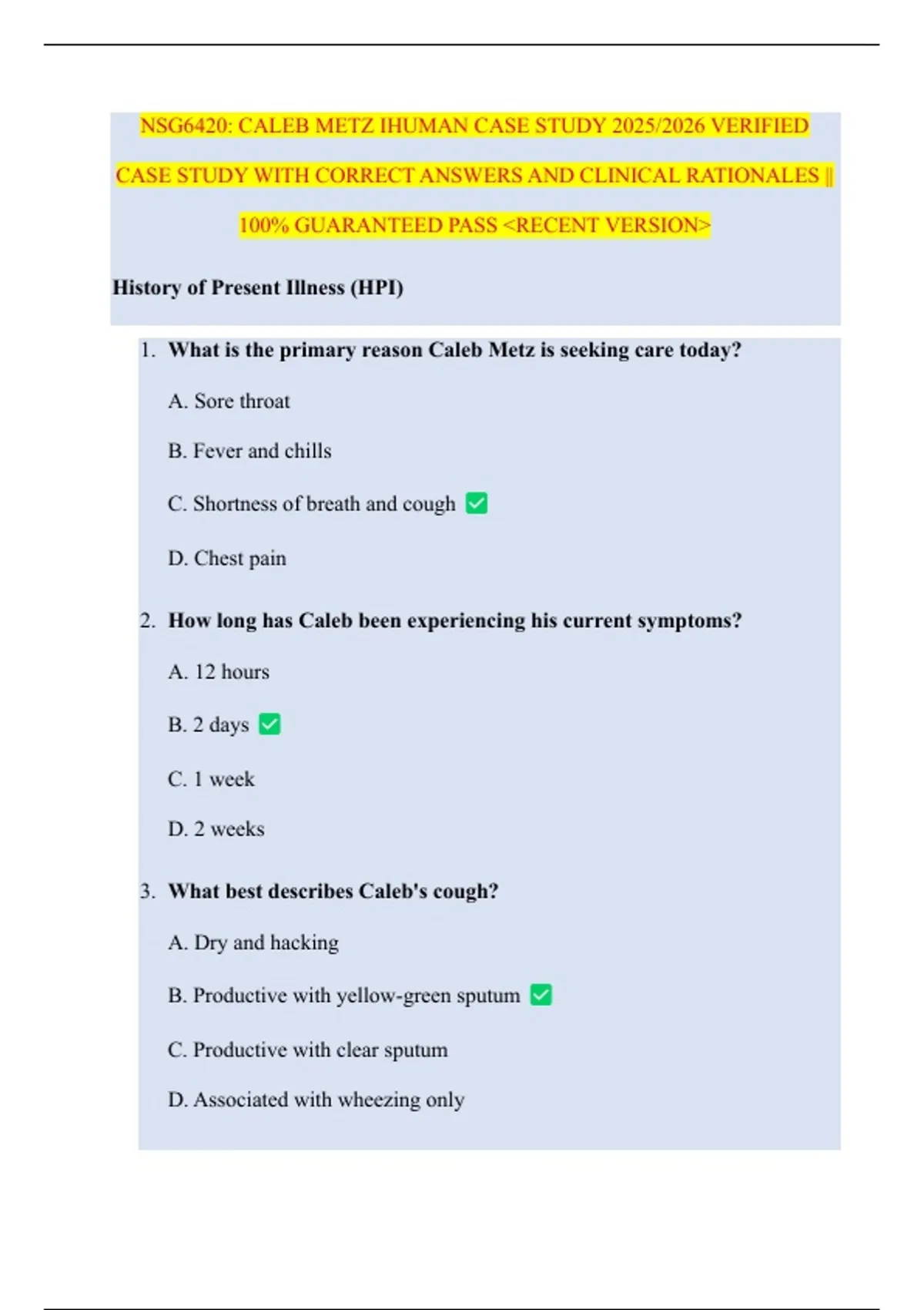 NSG6420: CALEB METZ IHUMAN CASE STUDY 2025/2026 VERIFIED CASE STUDY WITH CORRECT ANSWERS AND CLINICAL RATIONALES || 100% GUARANTEED PASS <RECENT VERSION>
