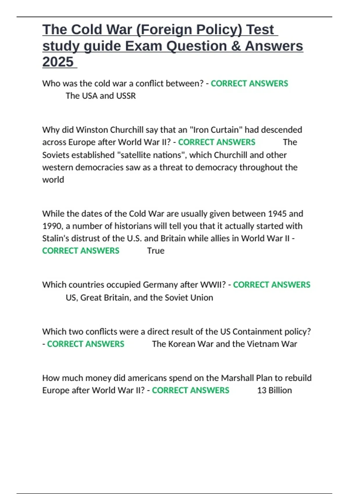 The Cold War (Foreign Policy) Test study guide Exam Question & Answers 2025.docx