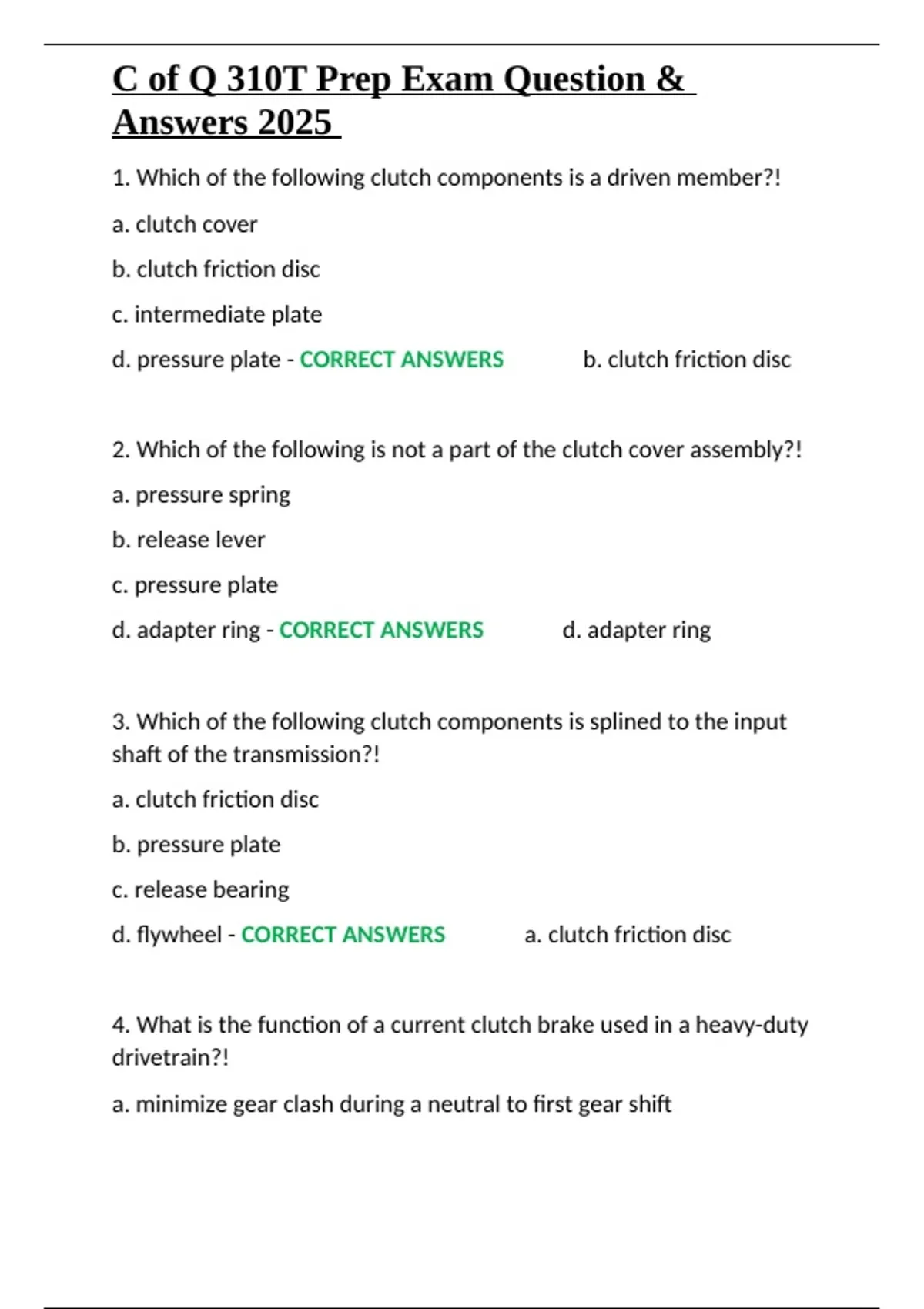C of Q 310T Prep Exam Question & Answers 2025.docx