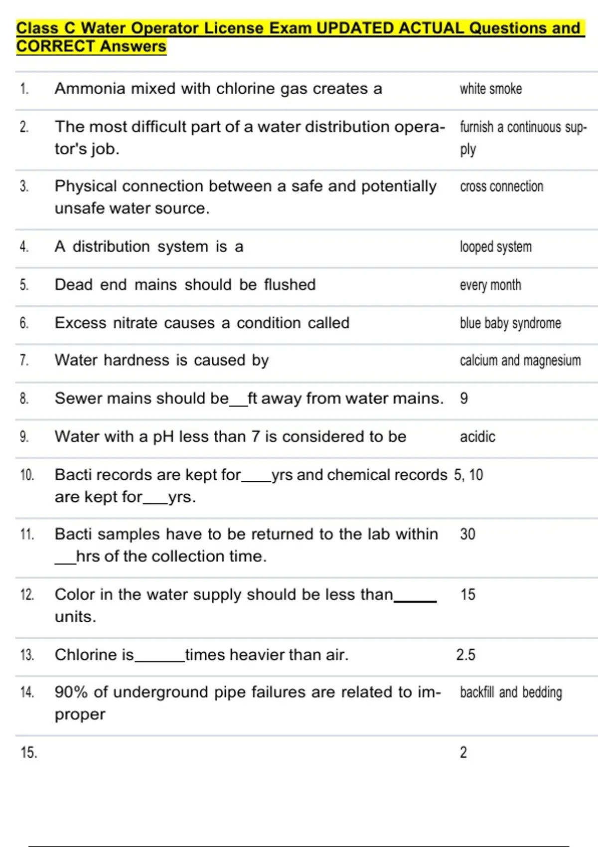14. 90% of underground pipe failures are related to im- backfill and bedding