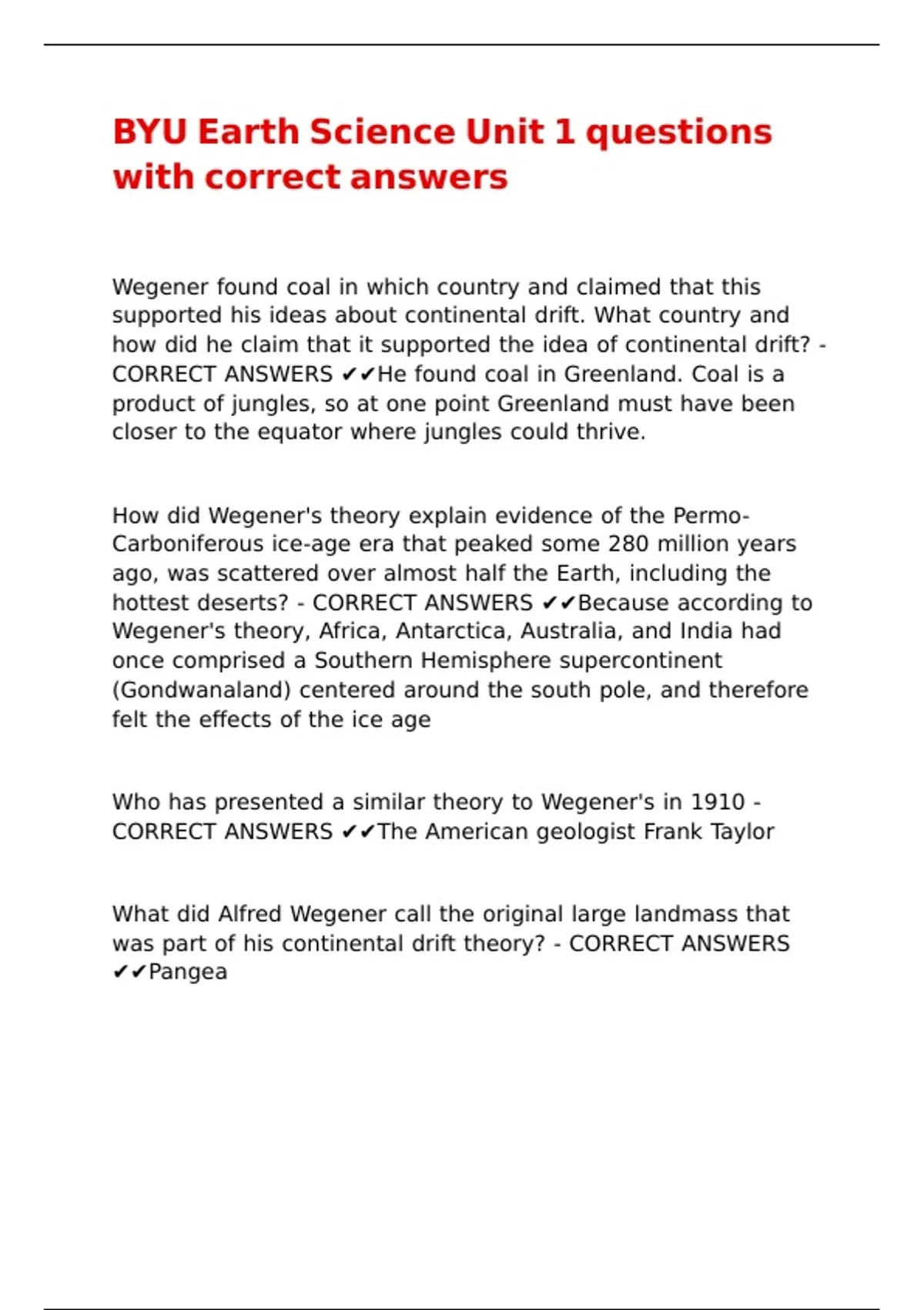 ANSWERS ✔✔Wegener proposed that earth began with one giant