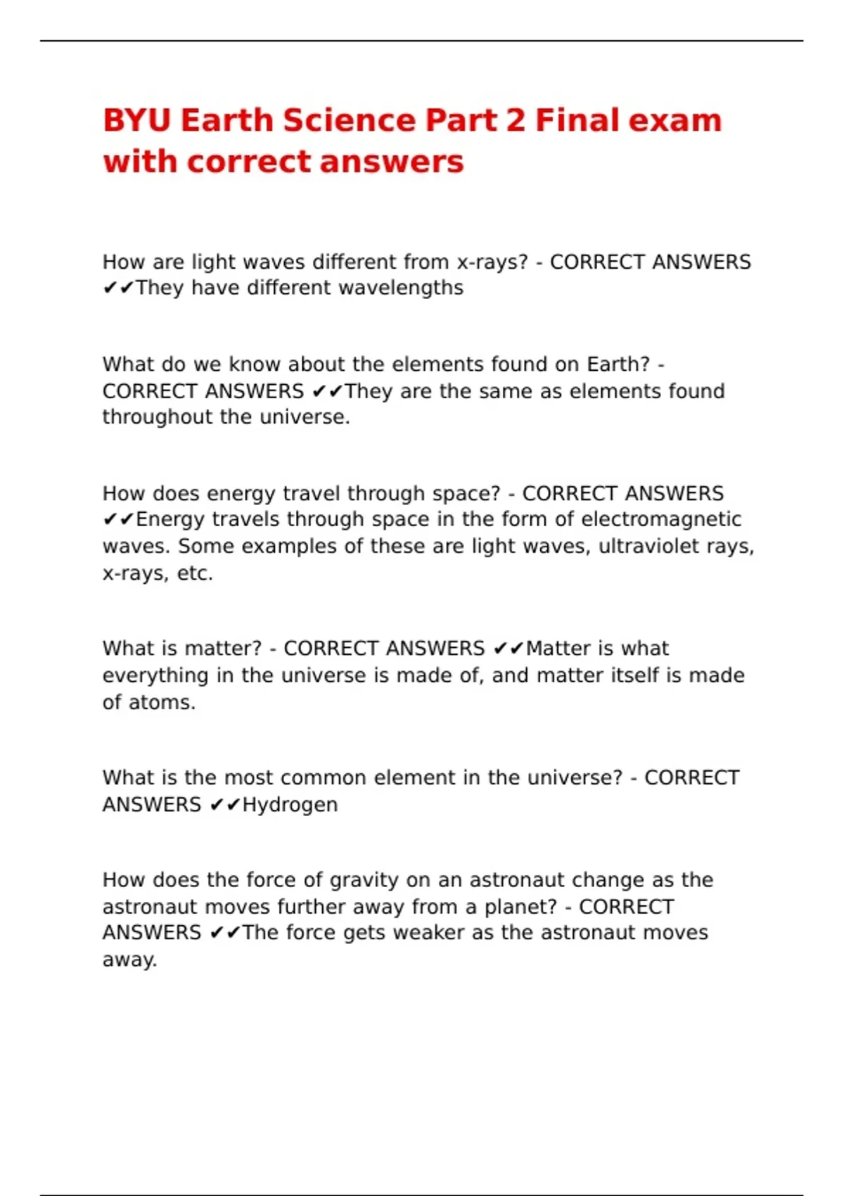 CORRECT ANSWERS ✔✔Earth has a greater force of gravity