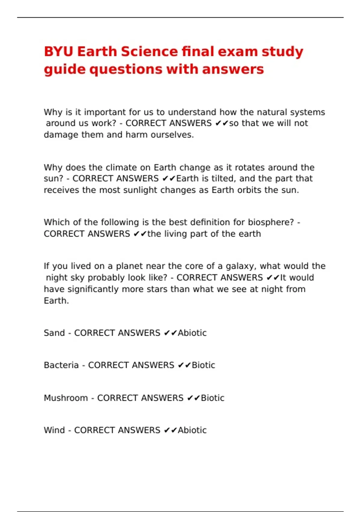 BYU Earth Science final exam study guide questions with answers