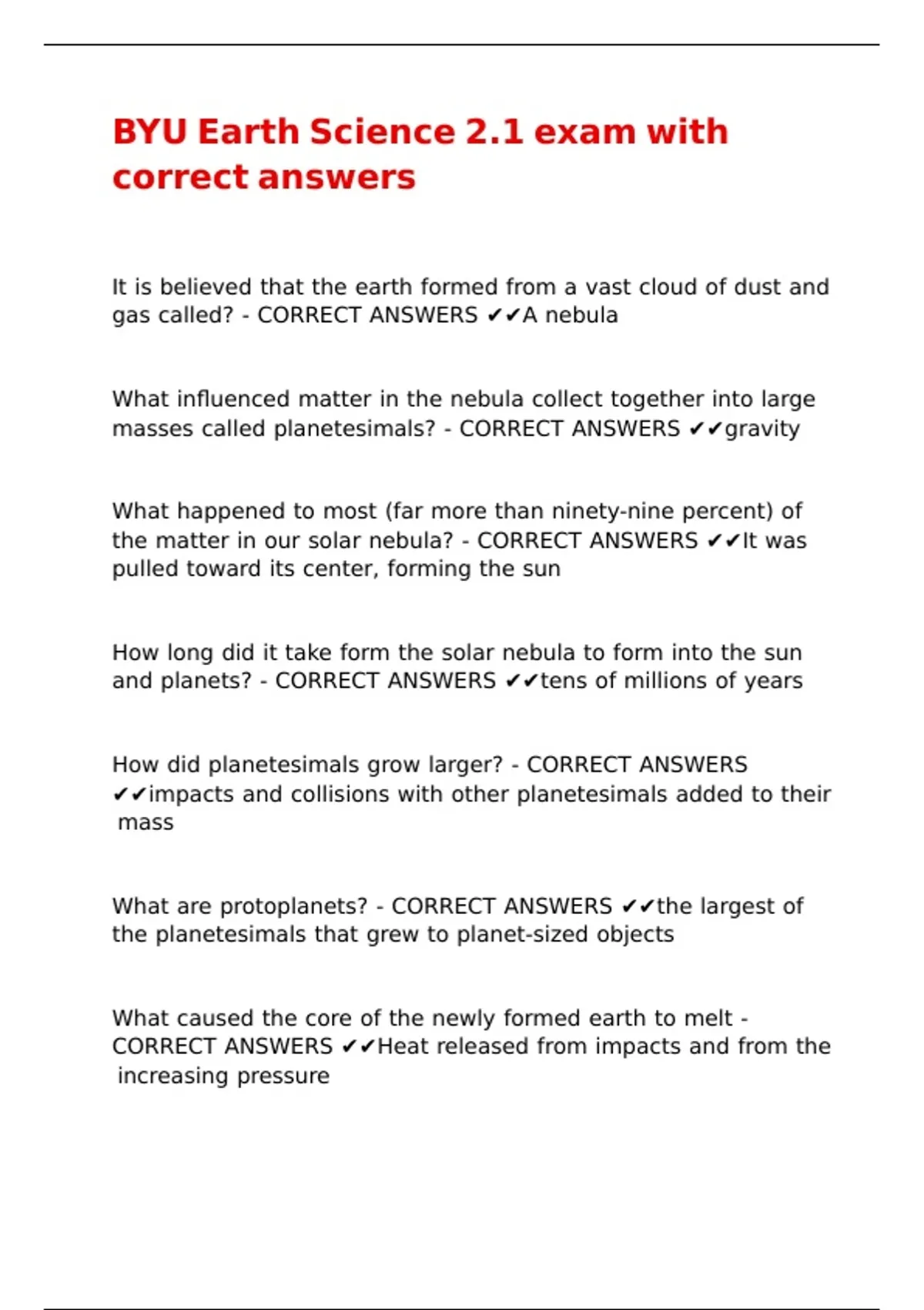 CORRECT ANSWERS ✔✔Heat released from impacts and from the