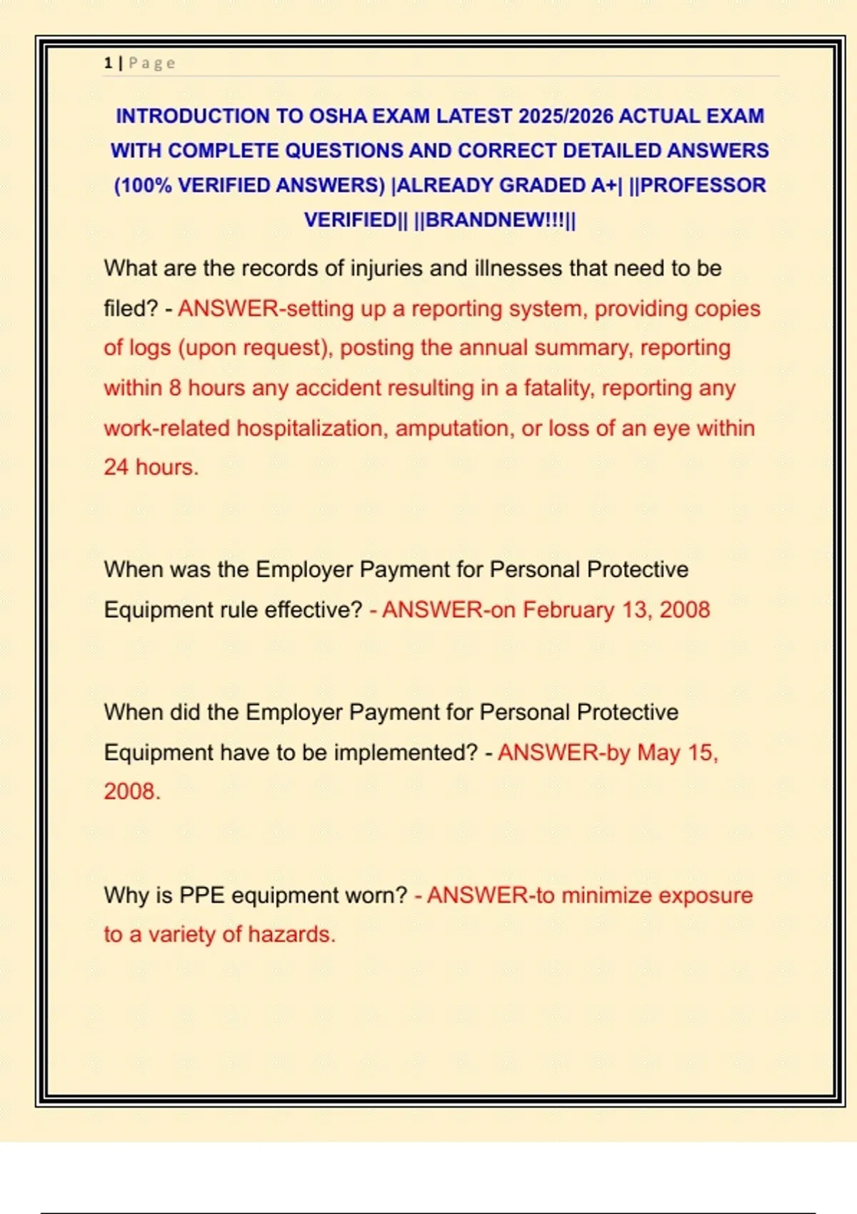 INTRODUCTION TO OSHA EXAM LATEST 2025/2026 ACTUAL EXAM