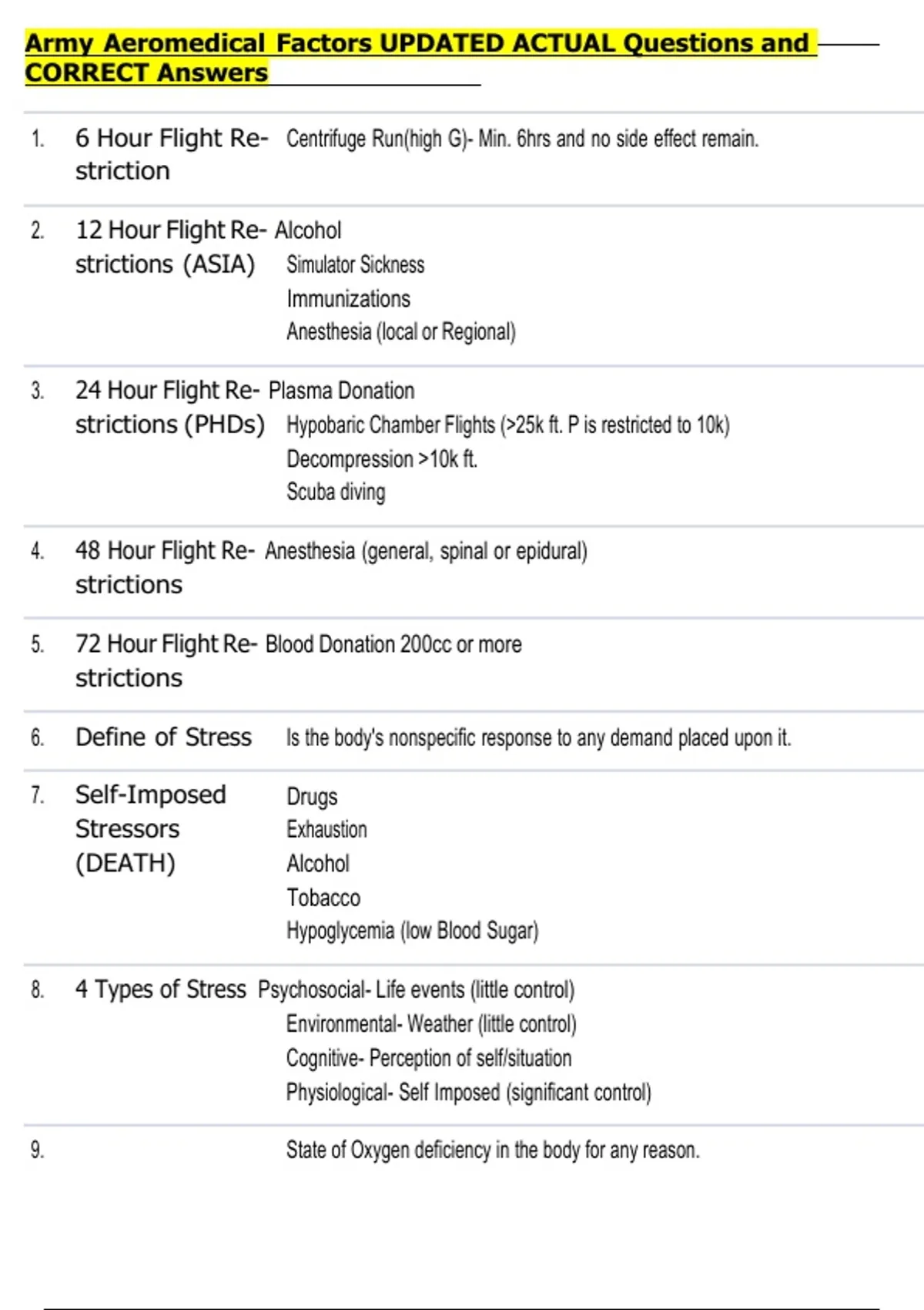 Army Aeromedical Factors UPDATED ACTUAL Questions and CORRECT Answers