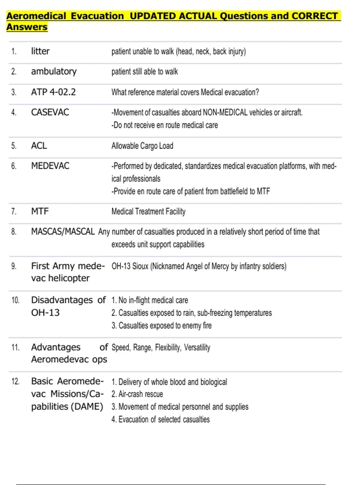 6. MEDEVAC -Performed by dedicated, standardizes medical evacuation platforms, with med-