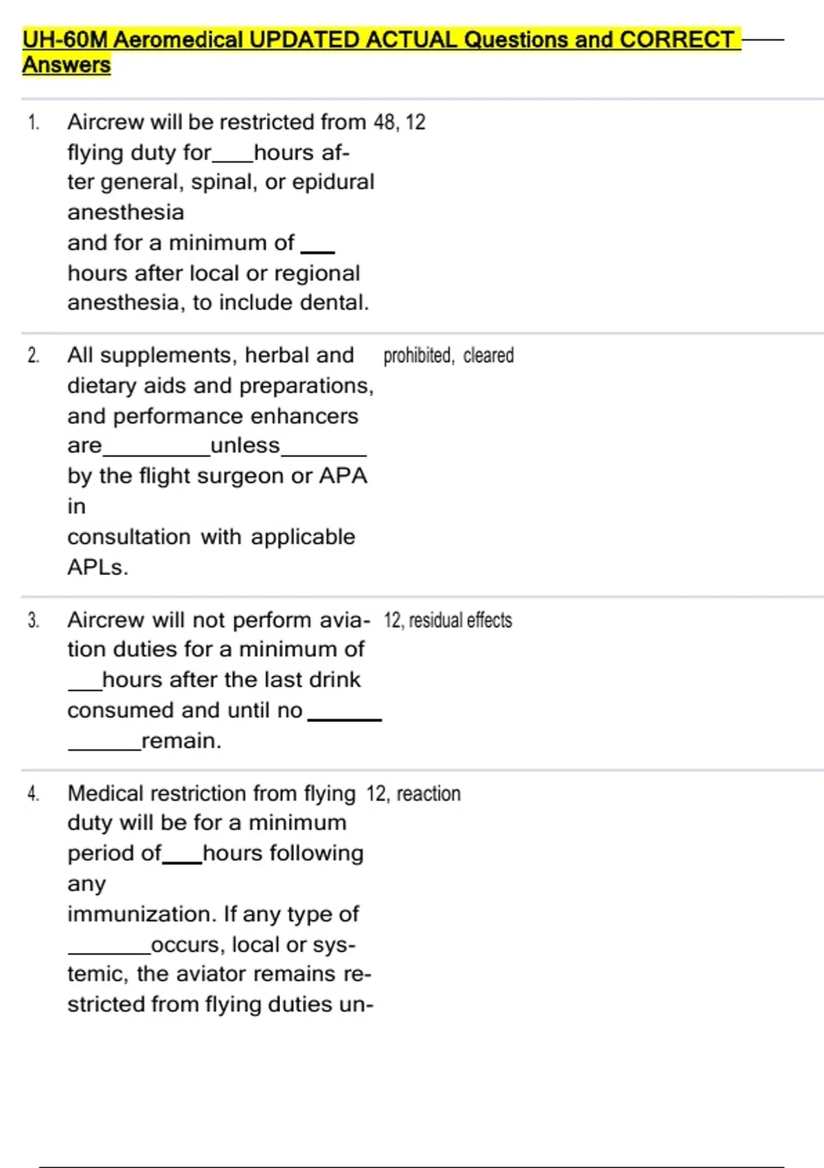 UH-60M Aeromedical UPDATED ACTUAL Questions and CORRECT