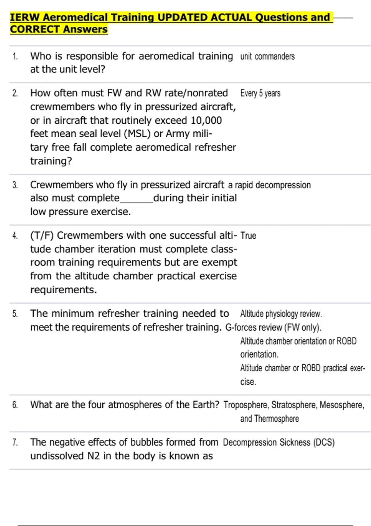 IERW Aeromedical Training UPDATED ACTUAL Questions and