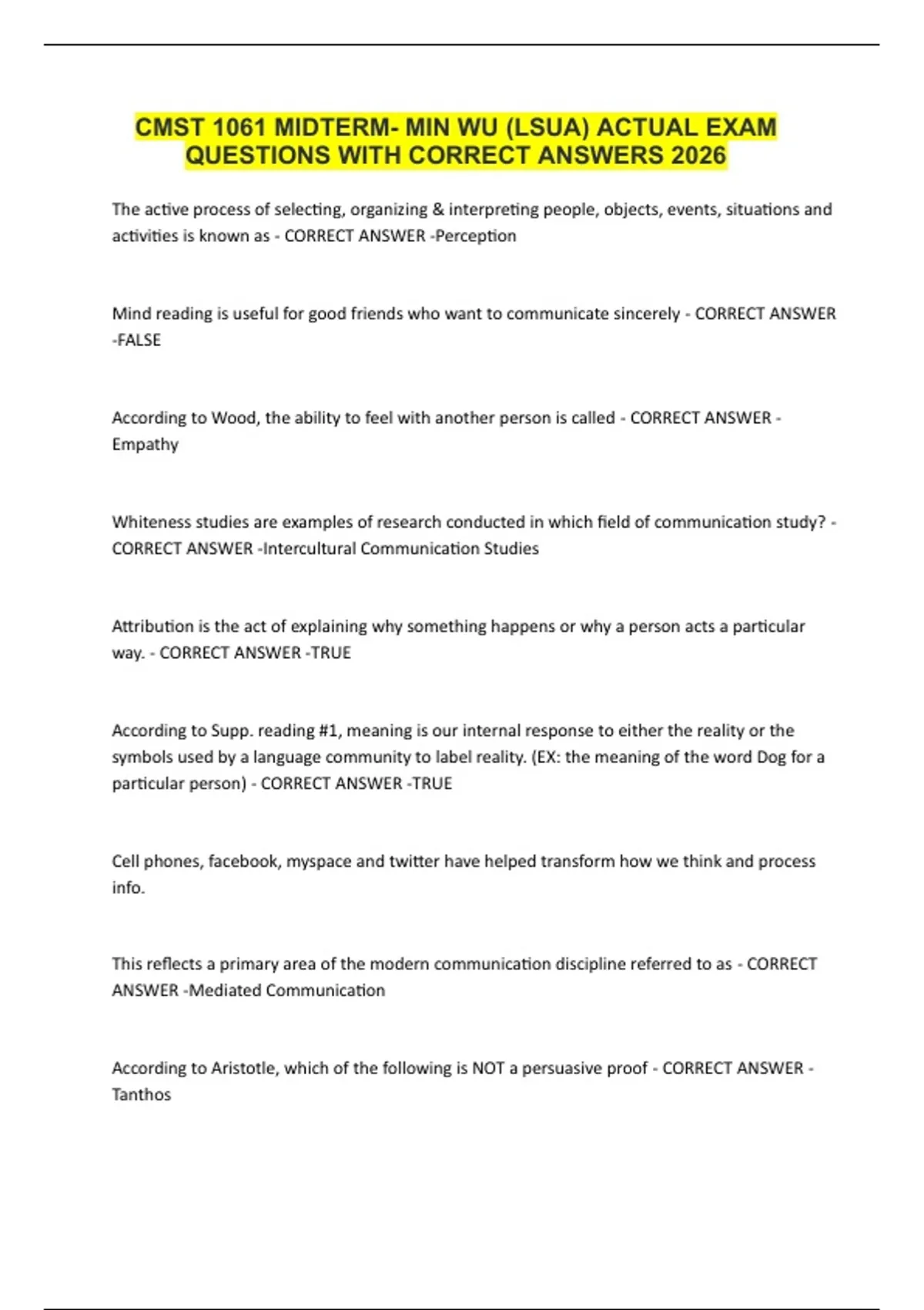 CMST 1061 MIDTERM- MIN WU (LSUA) ACTUAL EXAM QUESTIONS WITH CORRECT ANSWERS 2026