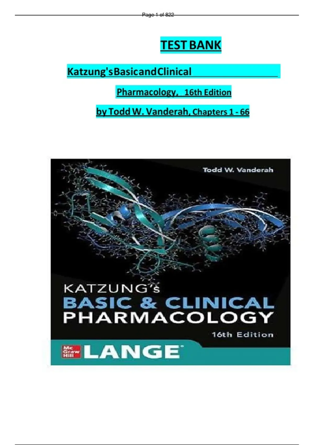 TEST BANK For Katzung's Basic and Clinical Pharmacology, 16th Edition By {Todd W. Vanderah, 2024,} Verified Chapters 1 - 66, Complete Newest Version