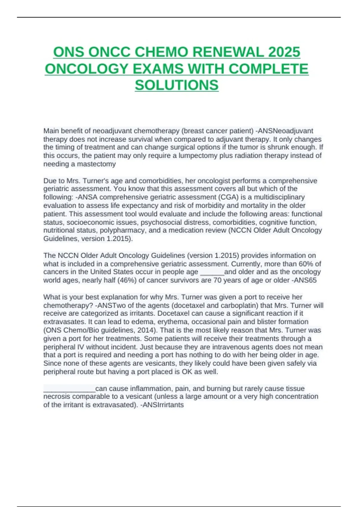 Due to Mrs. Turner's age and comorbidities, her oncologist performs a comprehensive