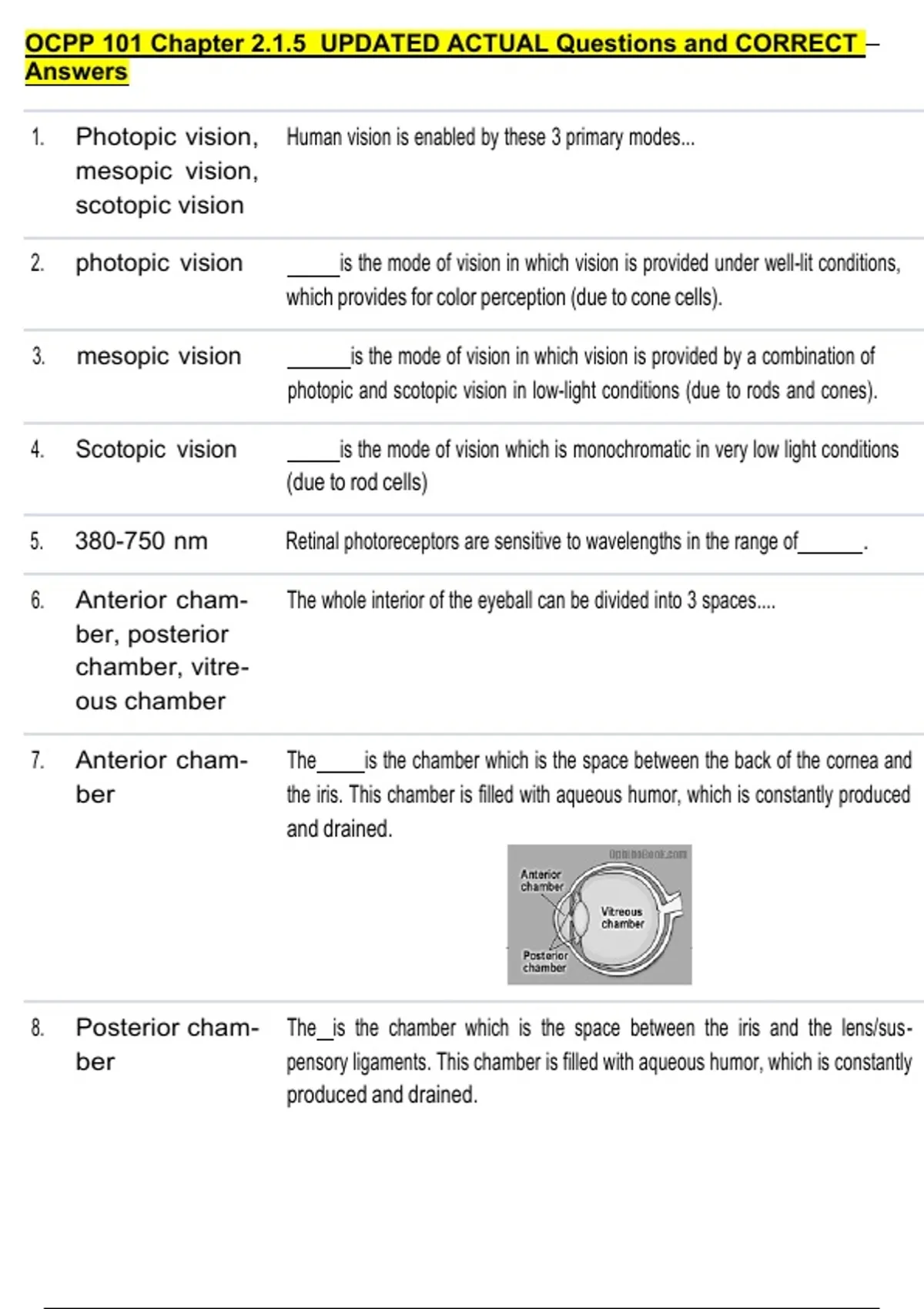 8. Posterior cham- The is the chamber which is the space between the iris and the lens/sus-