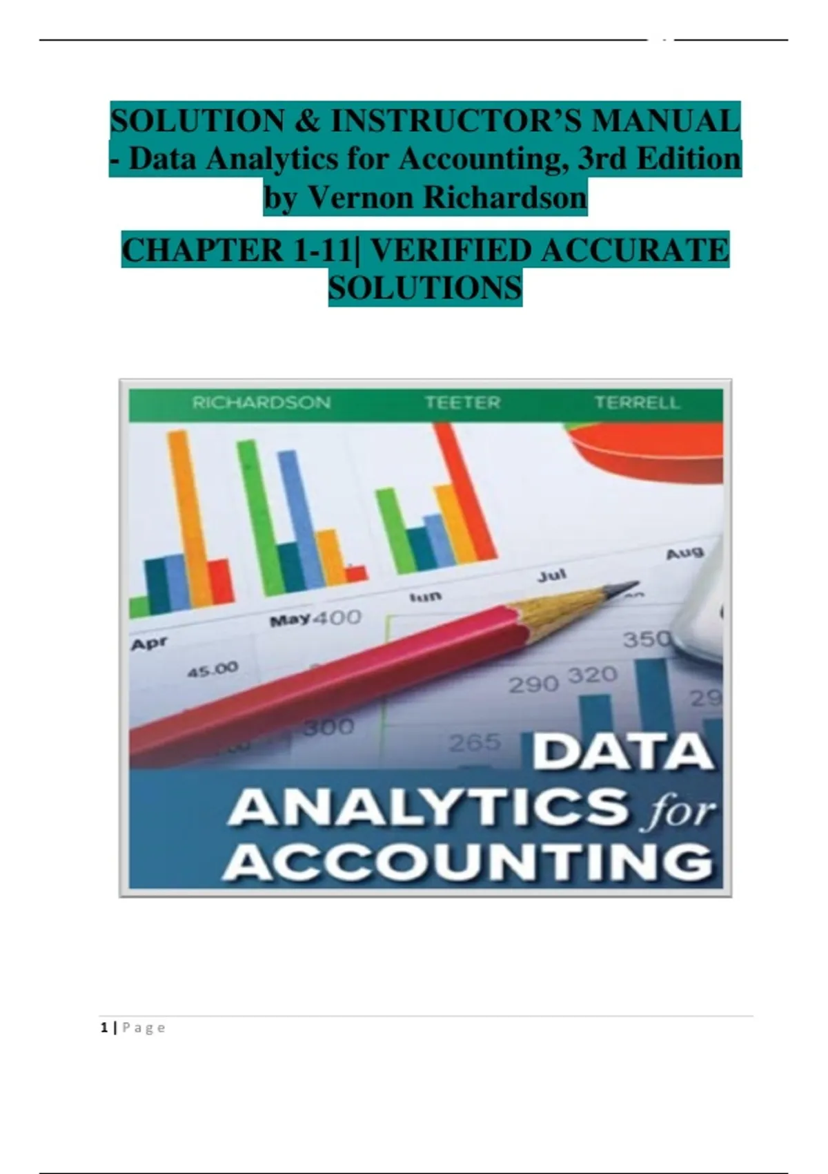 Data Analytics for Accounting (3rd Edition) – Vernon Richardson | Verified Instructor’s Manual and Solution Guide