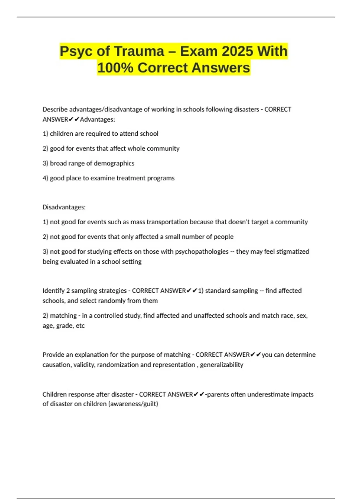 Psyc of Trauma – Exam 2025 With