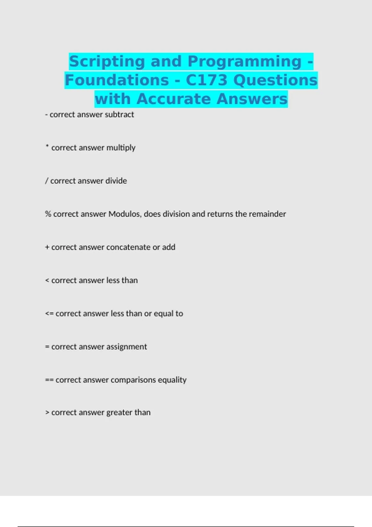 = correct answer assignment