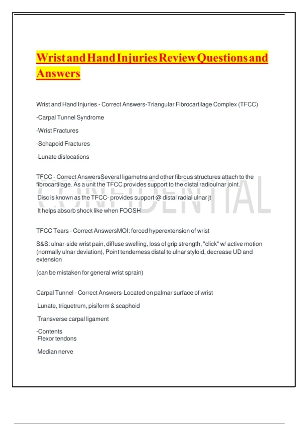 Wrist and Hand Injuries - Correct Answers-Triangular Fibrocartilage Complex (TFCC)