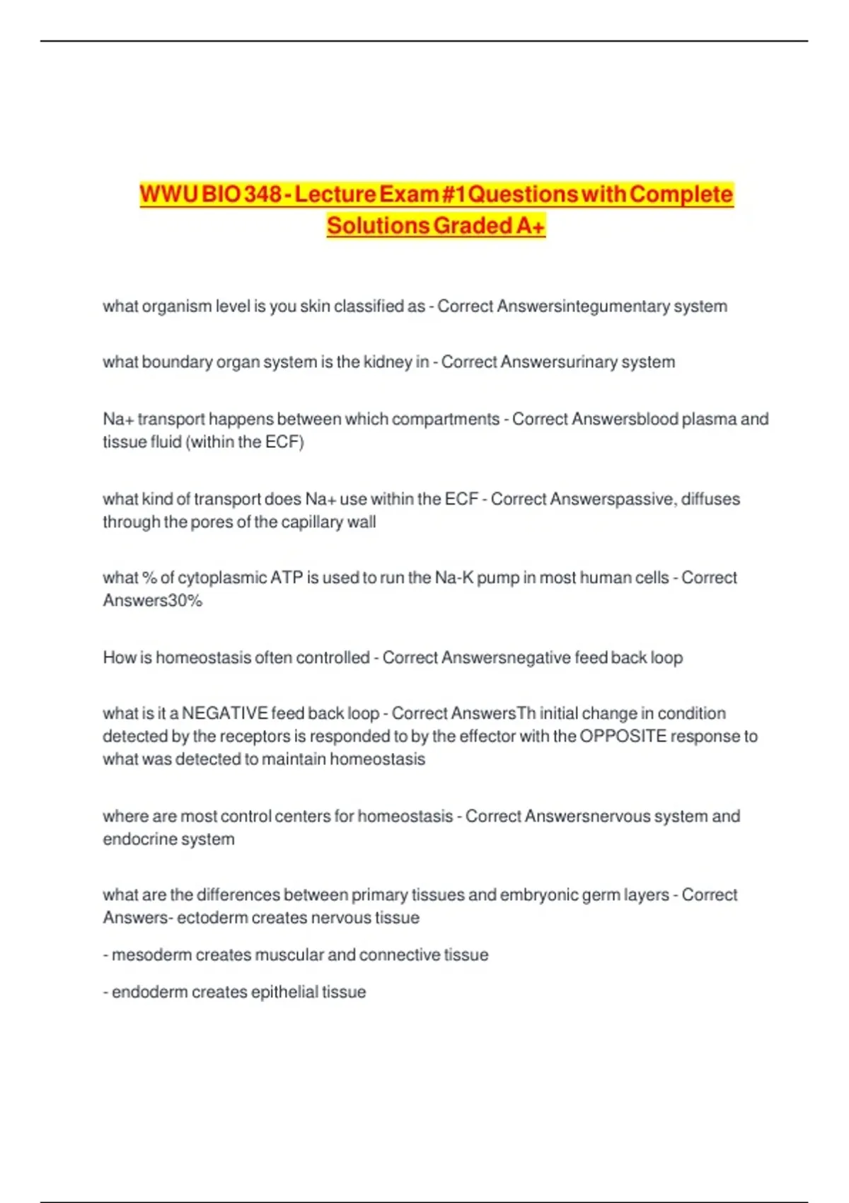 WWU BIO 348 - Lecture Exam #1Questions with Complete