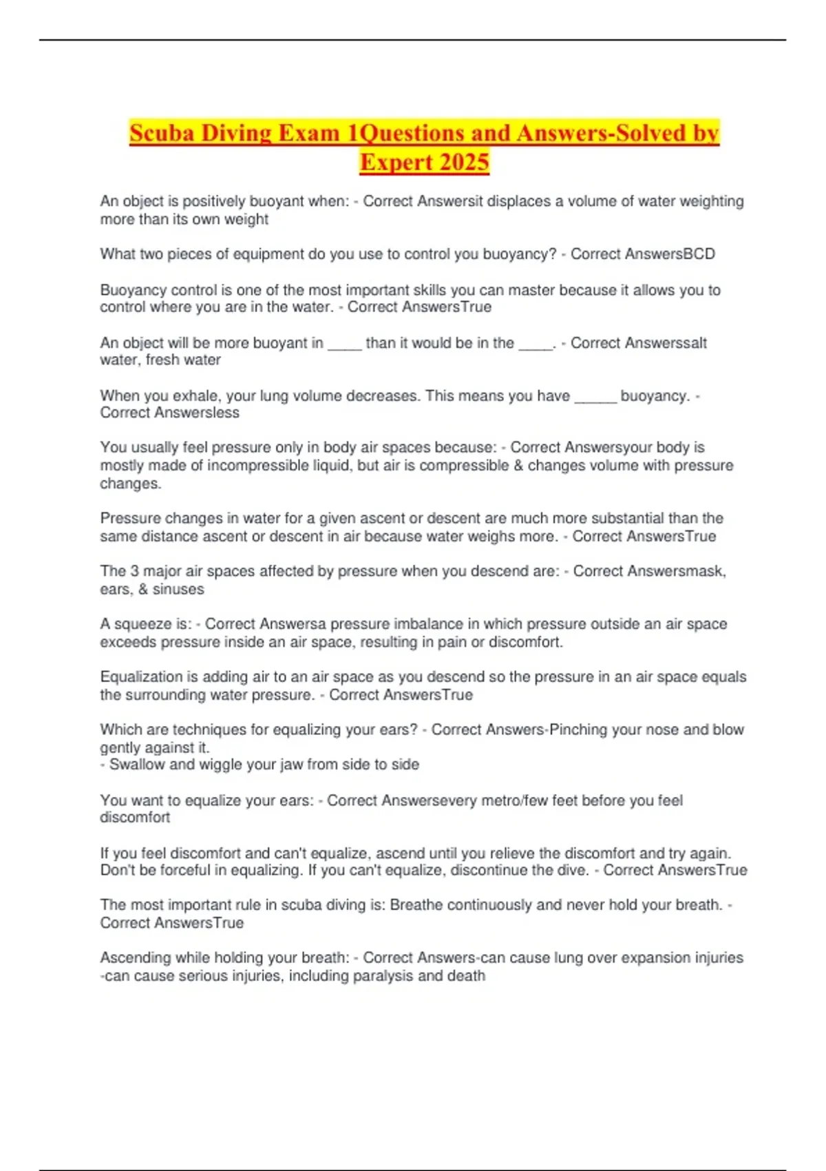 Scuba Diving Exam 1Questions and Answers-Solved by