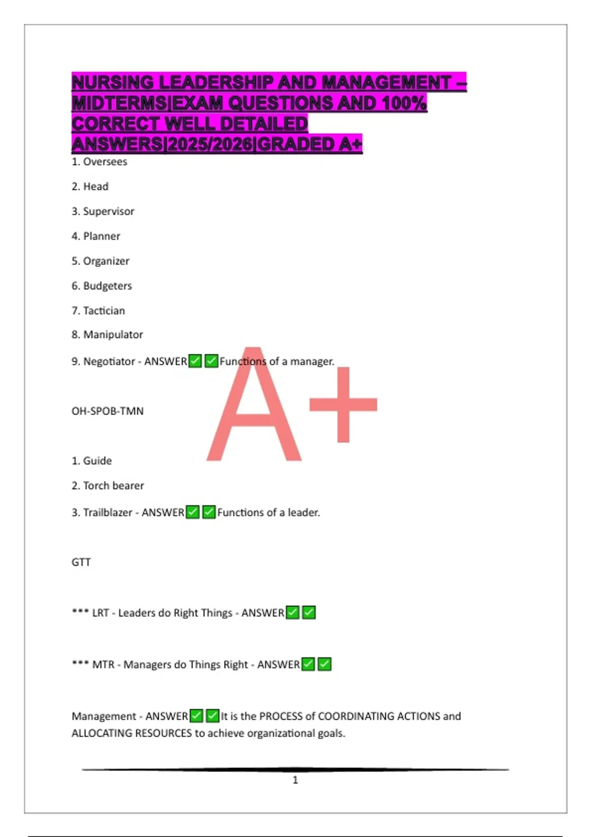 Management - ANSWER It is the PROCESS of COORDINATING ACTIONS and