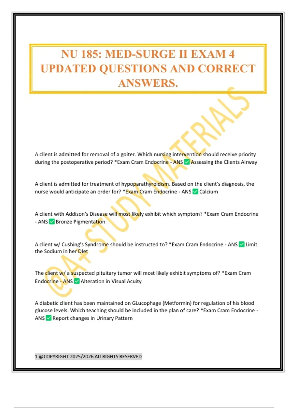 UPDATED QUESTIONS AND CORRECT