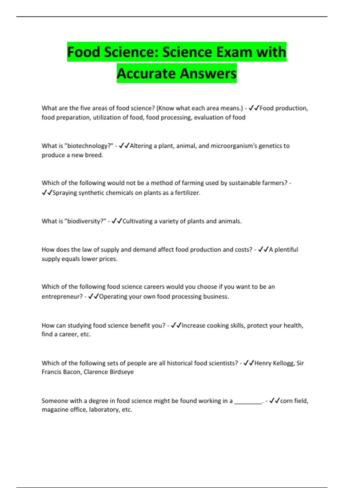 Food Science: Science Exam with